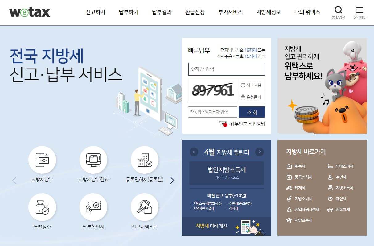 위택스 홈페이지나 모바일 앱(스마트 위택스)을 통해 신청 가능하며, 지자체 자동차세 담당부서에 방문 또는 전화로도 신청할 수 있습니다. 또한 지방세를 매번 내기 귀찮으신 분은 자동이체가 가능한데요 지방세 중 주민세, 재산세, 자동차세는 은행계좌를 통해 자동이체, 신용카드 자동납부가 가능하며 위택스, 스마트위택스에서 신청가능합니다.